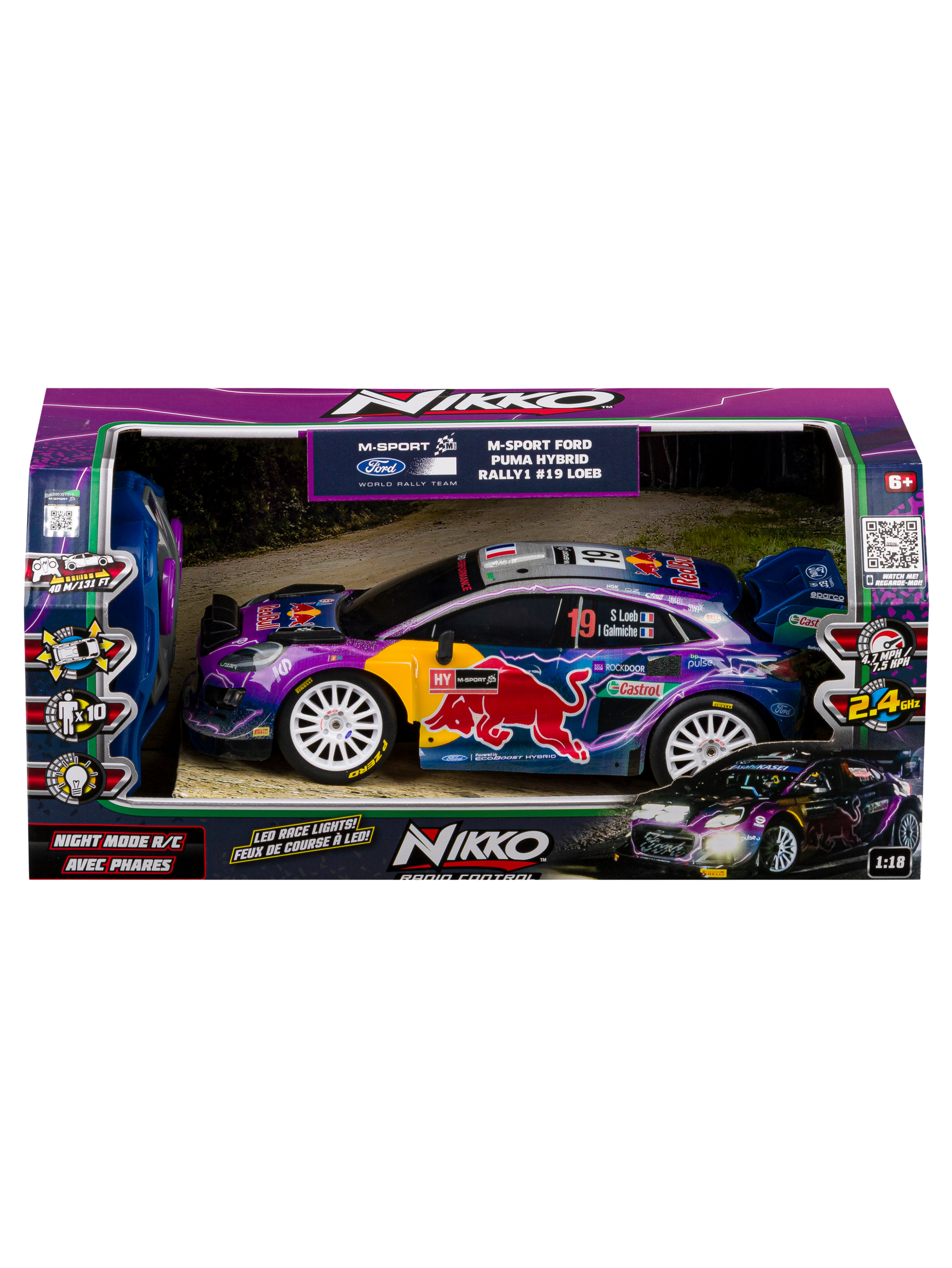 The 1/18th night mode RC is ready to race with its LED race lights! Light up the night stage of your rally course with the LED lights, full function speed and power of this speedy racer! Whether you are a Driver or a Team Supporter, this is simply a must have product. Ideal gift for any Rally Fan.